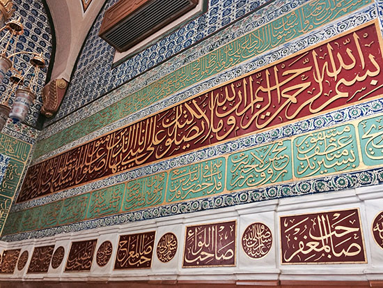 صفات وفضائل للنبي صلى الله عليه وسلم منقوشة على قبلة المسجد النبوي.